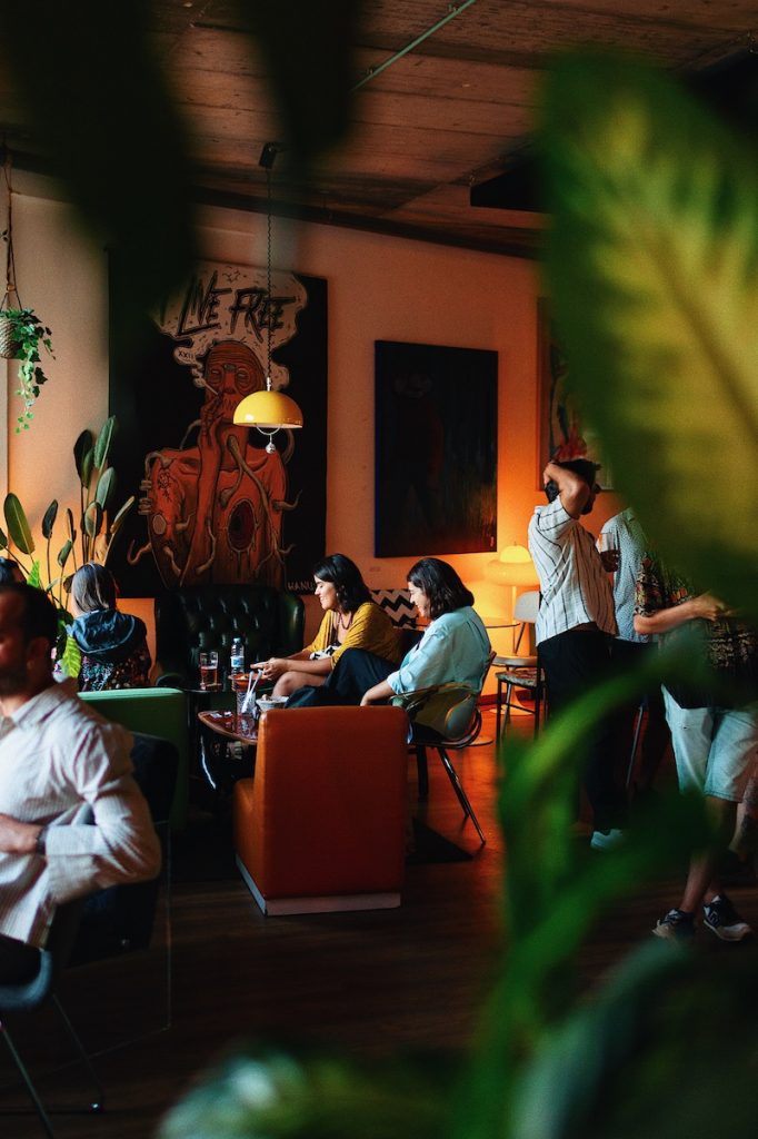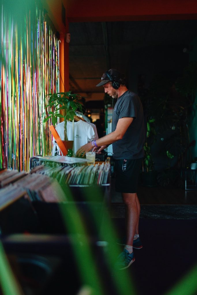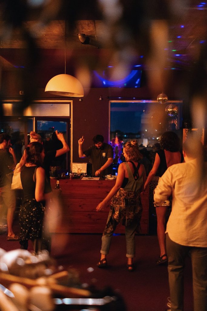 Assim que tiver a sua bebida na mão, dirija-se até a sala do fundo onde encontrará vintage clothes e discos vinis enquanto dança ao som do Dj! Há música a tocar todas as noites a partir das 7. Os tipos de música vão evoluindo em paralelo aos dias da semana, começando tranquilamente com um jazz lounge session na terça, passando do hip-hop ao funk até chegarmos no final de semana, com uma vibe mais eletrônica/ house que vai com certeza te fazer dançar, não deixe de trazer bons sapatos!