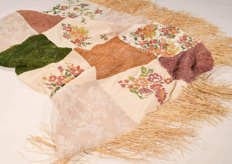 Concebido como um percurso labiríntico, o espaço expositivo articula tecido e um jogo de luz, criando uma cenografia que dramatiza a tensão entre revelação e ocultamento. Este dispositivo enfatiza tanto as projeções imaginárias como os silêncios e ressonâncias que habitam nos interstícios da memória coletiva e nos ângulos mortos das narrativas oficiais.