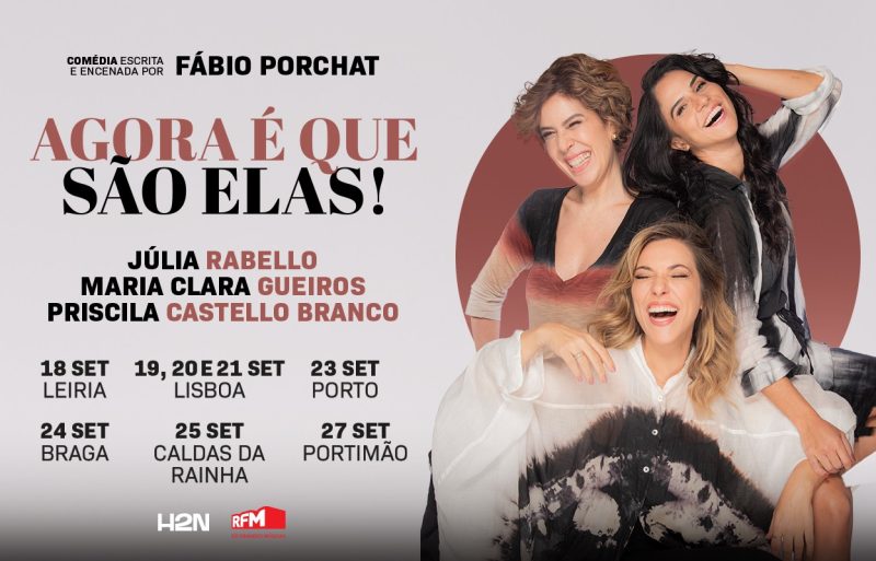 Agora É Que São Elas! tem nova data em Lisboa, 19 de Setembro! A peça vai percorrer o nosso país de Norte a Sul, com passagem por diversas cidades do nosso país: 18 de setembro no Teatro José Lúcio da Silva em Leiria, 19, 20 e 21 de setembro na Aula Magna em Lisboa, 23 de setembro no Teatro Sá da Bandeira no Porto, 24 de setembro no Espaço Vita em Braga, 25 de setembro no Centro Cultural e de Congressos das Caldas da Rainha e 27 de setembro no TEMPO Teatro Municipal de Portimão.