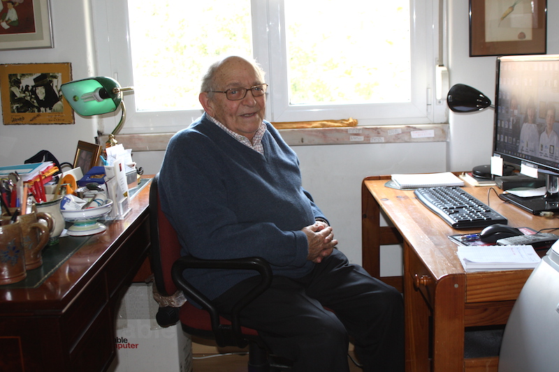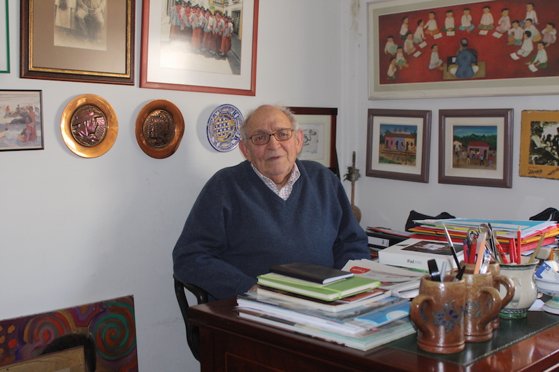 São onze horas da manhã quando chegamos à entrada do prédio onde vive com a sua mulher o “avô dos dinossáurios”, que é como quem diz António Marcos Galopim de Carvalho, o mais conhecido geólogo português. O porteiro, tez negra, cabelo esbranquiçado e andar cansado de uma vida de sobe-e-desce, pergunta com sorriso aberto: