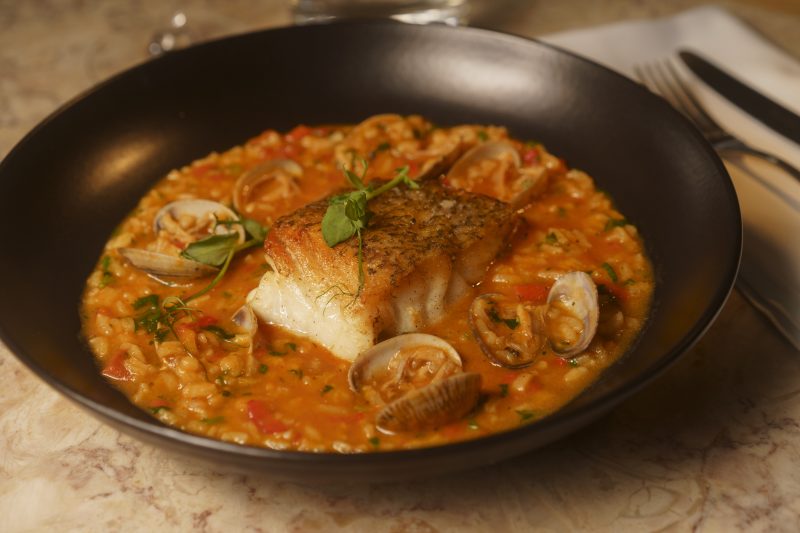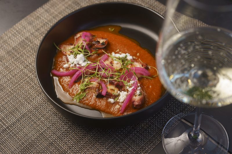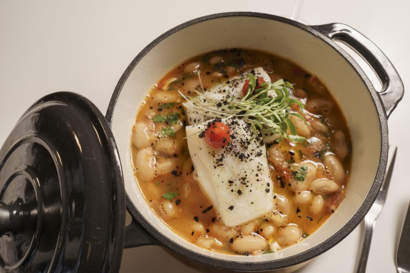 Nos pratos principais, o protagonismo vai para especialidades que sublinham o património gastronómico do país, como o lombo de bacalhau com feijoca e chouriço bísaro, ou o robalo com malandrinho de amêijoa, coentros e lima — uma fusão perfeita entre mar e terra. O polvo, presença incontornável na mesa portuguesa, surge reinventado com batata corada, beringela fumada e pico de gallo.