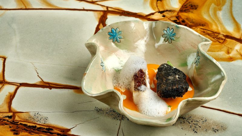 No Prelúdio, um dos pratos emblemáticos é a evocação dos Santos Populares, com sardinha, pão de azeitona e pimento. Na Passagem, sabores do mar como o lírio com percebes e aioli sobre salada de batata são apenas uma das propostas frescas e surpreendentes. A Permanência convida à indulgência com sugestões como a focaccia de limão confit com stracciatella e caviar. Já na Demora, o menu aprofunda-se com pratos como a moqueca de cherne com palmito e mandioca, entre outras interpretações com notas mais intensas. A refeição termina com leveza na Eternidade, onde criações como a sobremesa “Nacional 2”, com meloa, melão e melancia, encerram a experiência com frescura e elegância.
